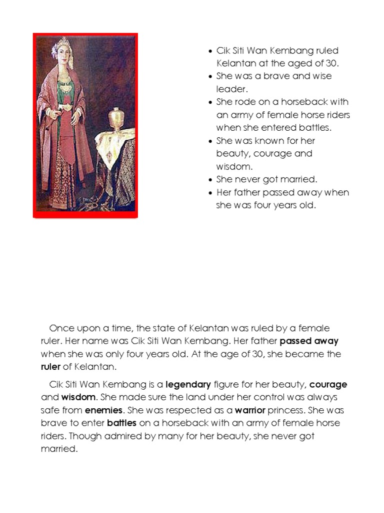Web Cik Siti Wan Kembang book. Web In relation to Puteri Saadong Cik Siti was the foster mother before she gave her sted and kingdom to Puteri Saadong.
